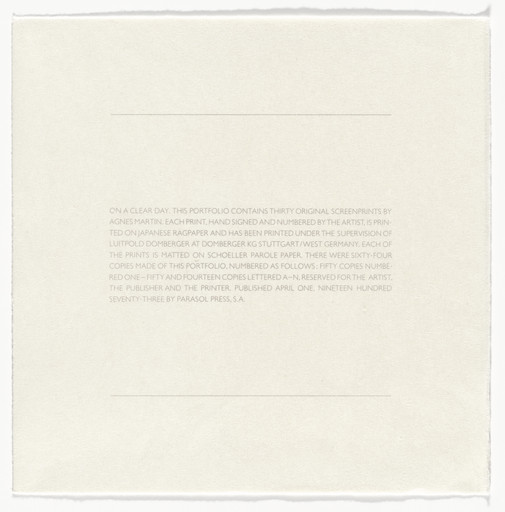 Agnes Martin Praise from the Rubber Stamp Portfolio 1976, published 1977