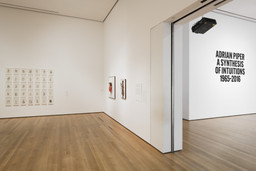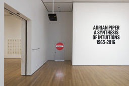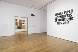 Bringing together over 290 works, including drawings, paintings, photographs, multimedia installations, videos, and performances, the exhibition offers a rare opportunity to experience her provocative and wide-ranging artwork. Occupying the Museum’s entire sixth floor and the Marron Atrium, Adrian Piper: A Synthesis of Intuitions 1965–2016 charts the artist’s five-decade career, including early paintings inspired by the use of LSD; key projects such as Mythic Being (1973), in which Piper has merged her male alter ego with entries from her teenage journals; My Calling (Card) #1 and My Calling (Card) #2 (1986), business card–sized, text-based works that confront the reader’s own racist or sexist tendencies; and What It’s Like, What It Is #3 (1991), a large-scale mixed-media installation addressing racist stereotypes, which will be shown in the Marron Atrium.