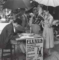 Signing certificates, performed during Fluxus Festival of Total Art and Comportment, Flea market, Nice, July 25, 1963