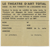 Certificate for Festival of Total Art and Comportment, Nice, July 27, 1963