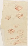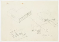 Lemke House, Berlin, Germany, Three aerial perspective sketches. One plan