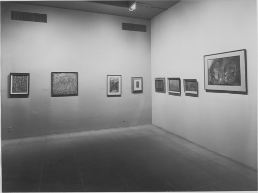 Tobey, a follower of Zen philosophy, believed that spiritual awakening could take place through everyday encounters. In The Void Devouring the Gadget Era, translucent tempera wash partially obscures a dense backdrop of fragmented symbols. Two years later, Tobey cleared his paintings of iconography and created allover patterns that resist a single focal point. Cage purchased one of these works shortly after its completion in 1944. He recalled that after leaving the gallery, “I happened to look at the pavement, and I noticed that the experience . . . was the same as the experience of looking at the Tobey.”