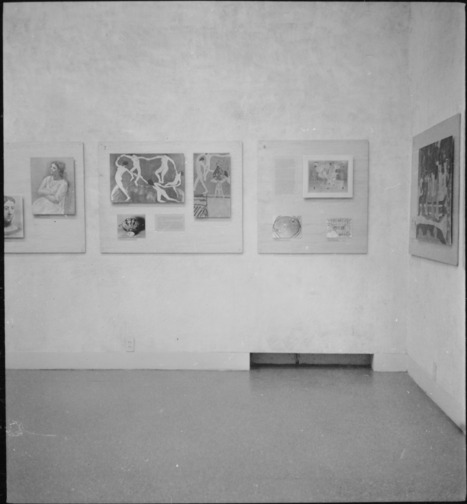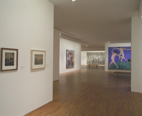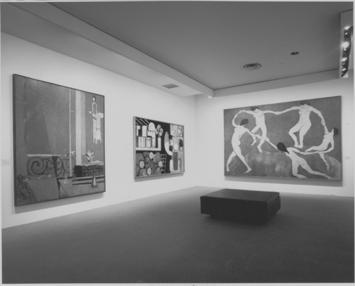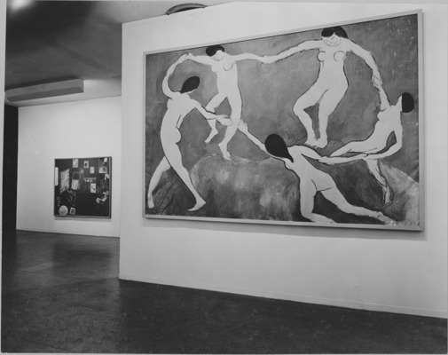 In March 1909, Matisse received a commission from the Russian merchant Sergei Shchukin for two large decorative panels, Dance and Music (now in the Hermitage Museum, St. Petersburg). This painting was made quickly as a compositional study for Dance, which was intended to hang on the landing of a staircase, approached from the lower right. This may be why the lower figure leans into the painting, increasing the sense of movement, and why the figure at left is so large, slowing it. Drawing visible beneath the paint shows that Matisse started with two smaller figures where the large figure is now.