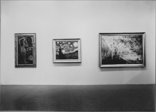 Van Gogh's night sky is a field of roiling energy. Below the exploding stars, the village is a place of quiet order. Connecting earth and sky is the flamelike cypress, a tree traditionally associated with graveyards and mourning. But death was not ominous for van Gogh. "Looking at the stars always makes me dream," he said, "Why, I ask myself, shouldn't the shining dots of the sky be as accessible as the black dots on the map of France? Just as we take the train to get to Tarascon or Rouen, we take death to reach a star." The artist wrote of his experience to his brother Theo: "This morning I saw the country from my window a long time before sunrise, with nothing but the morning star, which looked very big." This morning star, or Venus, may be the large white star just left of center in The Starry Night. The hamlet, on the other hand, is invented, and the church spire evokes van Gogh's native land, the Netherlands. The painting, like its daytime companion, The Olive Trees, is rooted in imagination and memory. Leaving behind the Impressionist doctrine of truth to nature in favor of restless feeling and intense color, as in this highly charged picture, van Gogh made his work a touchstone for all subsequent Expressionist painting.