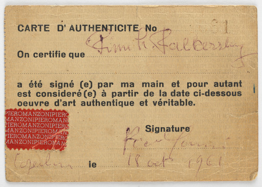 Piero Manzoni Declaration of Authenticity No. 061 (Carte d'authenticité No. 061) 1961
