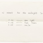 Mieko Shiomi. < event for the midnight >. 1963. Ink on paper, 4 7/16 x 6 7/8″ (11.3 x 17.5 cm). The Museum of Modern Art, New York. The Gilbert and Lila Silverman Fluxus Collection Gift. © 2015 Mieko Shiomi