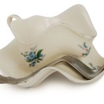 For this project, New York–based artist Robert Lazzarini‘s first experiment in “complex nonlinear distortion,” the artist composited attributes of different cups and saucers to arrive at an archetypal object. He first drew the cup and saucer using three-dimensional modeling software, and then he laser-scanned a well-proportioned spoon and fed the scan directly into his computer. He next applied multiple sine wave patterns along different axes through these virtual objects. You got all that?