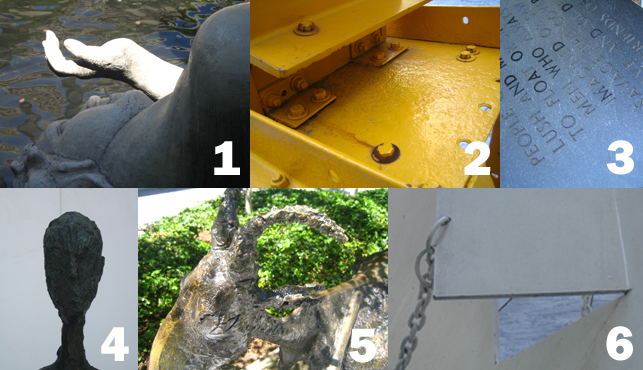 How well do you know your MoMA? Above are images of works from the MoMA collection that are currently on view in The Abby Aldrich Rockefeller Sculpture Garden—in the hopes that warm weather will soon be here to stay. So put on your summer shoes and make for the garden. If you think you can identify the artist and title of each work, please submit your answers by leaving a comment on this post. We’ll provide the answers—along with some information about each work—next Friday, along with the next Do You Know Your MoMA? challenge.