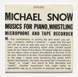 Michael Snow. Musics for Piano, Whistling Microphone and Tape Recorder. 1975
